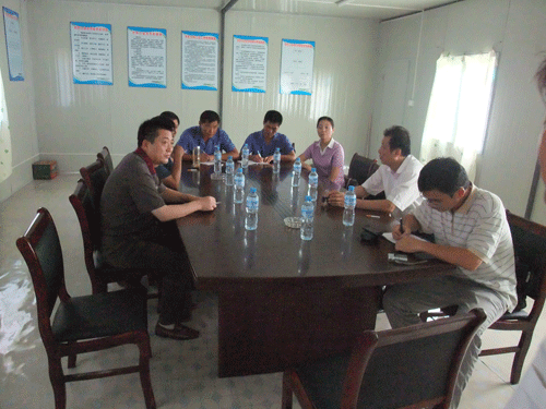 項目部經理黃建海向李主席一行表示熱烈歡迎,就項目工程進度、質量、安全生產及職工的生活情況進行了匯報,李主席對項目部工作給予了肯定,并對項目部開展“雙爭”競賽活動作了指導。李主席一行深入施工現場,向堅守在一線的員工表示了慰問,他指出要做好一線職工防暑降溫工作,確保項目工程無一例安全事故,勉勵大家要抓住當前有利的施工條件,進一步加快施工進度,抓好工程質量,為公司項目創建品牌工程,并親手送上了防暑降溫物品。