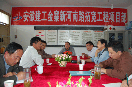 10月3日,公司總經理、黨委書記李世龍,黨委副書記、紀委書記、工會主席曹興堂,總工程師盛智杰,總經理助理、辦公室主任紀愛國,總承包部副主任周和友等一行到金寨縣新河南路拓寬工程現場檢查指導工作,對工程進度和質量安全措施等提出了具體要求。