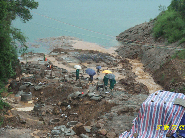 6月18日,花亭湖旅游碼頭工地突遭暴雨襲擊,降雨量創(chuàng)上半年度單日雨量新高,施工進(jìn)場道路存在多處坍塌,部分路段出現(xiàn)嚴(yán)重滑坡,施工區(qū)內(nèi)存有大量積水,碼頭前沿遭雨水重創(chuàng)。