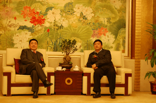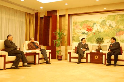 集團公司總經理、副董事長、黨委副書記趙時運(左二),公司總經理、黨委書記李世龍(左一)等參加會見