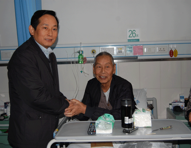 病房中牛主席緊握退休老職工的手,轉達了集團公司對他的親切問候,詳細詢問了他的病情和現在的生活情況,叮囑陪同子女要關心和照顧好老人家,使其早日恢復健康。并希望老同志們在新的一年里能夠一如既往的關心和支持公司的發展,為公司的建設獻計獻策。