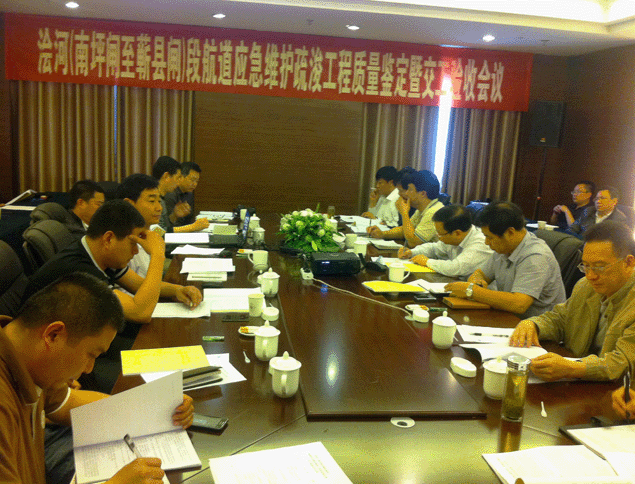 2013年5月11日上午,澮河航道應急維護疏浚工程質量鑒定暨交工驗收會議在宿州順利召開。參加會議的有:安徽省港航管理局副局長王恩國、省交通質監(jiān)局副處長王樂遠、淮北市港航管理局局長李衛(wèi)東、宿州市港航管理局局長周明宣及淮北市交通質監(jiān)站、設計、監(jiān)理、施工等單位的有關領導和人員,公司副總經(jīng)理侯力、項目經(jīng)理曹萬飛參加驗收會。會議由安徽省港航管理局建設處張駿處長主持。