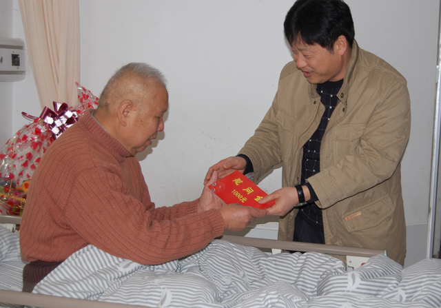 許總轉達了集團公司對他們的親切問候,詳細詢問了他們的家庭和生活情況。在病房中許總緊握退休職工李竹軒的手,叮囑他要安心養(yǎng)病,以積極樂觀的心態(tài)與病魔作斗爭,祝他早日康復。感謝他們?yōu)楣景l(fā)展作出的貢獻,希望老同志們在新的一年里能夠一如既往的關心和支持公司的發(fā)展,為公司的建設獻計獻策。