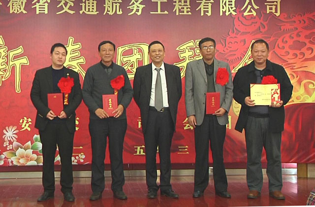 晚會(huì)上,首先對2014年度,獲得交航公司先進(jìn)集體和先進(jìn)個(gè)人的優(yōu)秀項(xiàng)目部和優(yōu)秀項(xiàng)目經(jīng)理進(jìn)行表彰。集團(tuán)公司副總經(jīng)理、黨委委員許克順,交航公司董事長、黨委書記、總經(jīng)理李世龍先后為獲獎(jiǎng)人員和代表頒發(fā)榮譽(yù)證書和獎(jiǎng)勵(lì)。