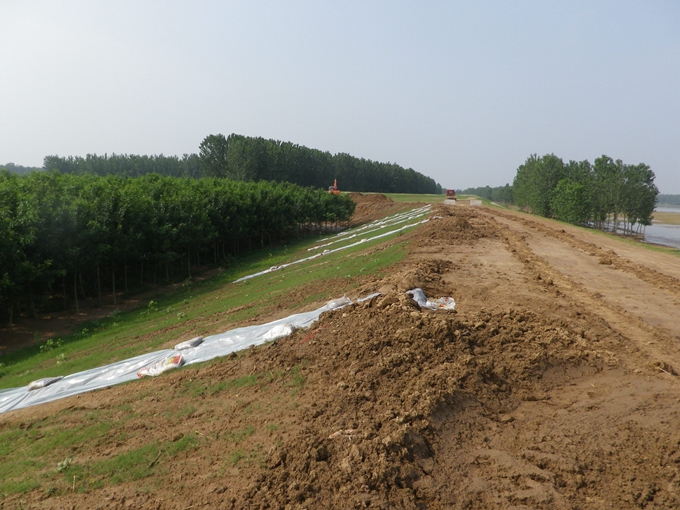 李玉強一行沿著我標段剛完工的新建堤防、老堤加固堤頂邊走邊看,詳細聽取了我標段項目副經理關于我標段目前的防汛工作情況的匯報。李玉強表示新建成的堤防工程是蚌浮段臨北處今年防汛工作的關鍵,對我標段堤防邊坡雨淋溝防護措施表示贊賞,并要求在蚌浮段方臨處各參建單位中推廣。堤防工程土壤砂性大,修復工作繁重,李玉強囑咐我標段在面臨今年可能出現大洪水的情況下,思想上要保持高度重視,并在人力、物力、財力上給予充足支持,確保堤防工程的安全。