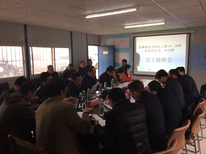 3月10日,在仙桃港碼頭項目現場會議室召開的仙桃港碼頭工程驗收會議上,武漢港務集團總經理助理徐繼傳正式宣布仙桃港碼頭1#、2#件雜貨泊位,1#、2#引橋通過單位工程驗收。仙桃市交通局、海事局、質監站、武港集團,設計院、監理組、港灣檢測,施工方等代表參加了會議。