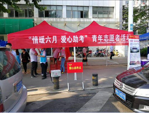 安徽交航合軌4號(hào)線3標(biāo)項(xiàng)目職工在祁門路與金寨路交口設(shè)立義工服務(wù)站,為考生主動(dòng)送水、送文具,指導(dǎo)他們乘坐愛心出租車、公交車,對(duì)心里緊張的考生進(jìn)行心理輔導(dǎo),幫助考生減壓。為陪考家長提供座椅、飲用水等服務(wù)。同時(shí)為考生分發(fā)防暑藥品。參與愛心助考公益活動(dòng)的交航公司職工成為高考期間合肥街頭一道靚麗的風(fēng)景線。