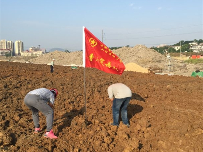 炎炎盛夏,亞父路項目部青年突擊隊的隊員高舉旗幟,在隊長孔超的帶領下,完成了施工中的各項任務。