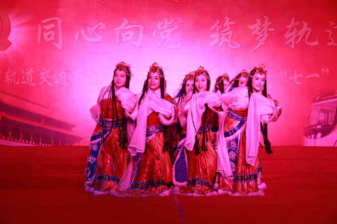 6月下旬,安徽交航合肥軌道交通4號線TJ03項目部接到演出邀請后,公司領導十分重視,公司工會積極組織職工排練節目。經過5天的緊張排練,該節目順利通過合肥軌道公司的初審、二審,從38個節目中脫穎而出,成為15個參演節目中一朵靚麗的小花,在合肥5條軌道交通線四五十家施工企業中只有安徽交航、安徽路橋、中鐵四局等9家單位參演。歡快的舞曲、鮮明的節奏及歌頌的詞句展現出在解放西藏“一面進軍、一面修路”的戰斗中,在實現民主改革的日子里,在邊疆自衛反擊的戰場上,解放軍和藏族人民結下的魚水情意。演員們用飽滿的情緒和奔放的舞姿將演出推向高潮。
