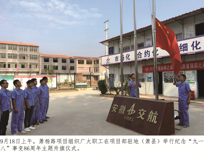 【編者按】1931年9月18日,日本帝國主義悍然發動了震驚中外的“九一八”事變。自此,中國人民開始了長達14年之久的抗日戰爭。為了紀念“九一八”事變86周年,教育廣大職工銘記歷史、勿忘國恥、奮發圖強、振興中華,安徽交航公司近日舉行了紀念“九一八”事變86周年愛國主義教育系列主題活動……