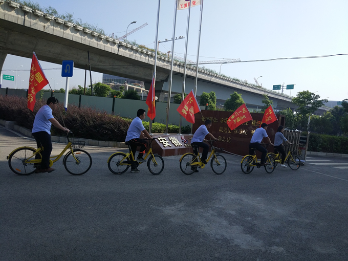 上午9時,項目部舉行升國旗儀式。儀式結束后開始進行慢騎活動,大家將“九一八”宣傳旗插在自行車上,沿馬路騎行,并發放“九一八”宣傳單;另外還組織了征集簽名、參觀網上紀念館等活動,大家也都非常積極地參加。通過這一系列的活動,員工們認真學習了解了那段令人不能忘卻的歷史。同時,員工們紛紛表示要不斷提高自身能力,為祖國未來的建設盡自己的一份力。