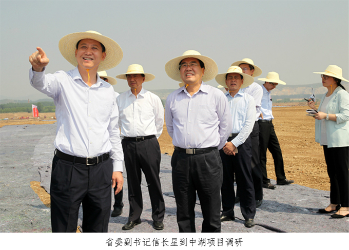 淮北市委市政府高度重視中湖項目,自開工以來,已有來自省委、省人大、省政協(xié)等單位的10余位省部級領(lǐng)導(dǎo)蒞臨現(xiàn)場視察工作。淮北市委書記、市人大常委會主任黃曉武常邀各級領(lǐng)導(dǎo)登上中湖一期1#湖心島視察,并親自當(dāng)起講解員,描繪未來淮北“一帶雙城三青山、六湖九河十八灣”的美好藍(lán)圖。