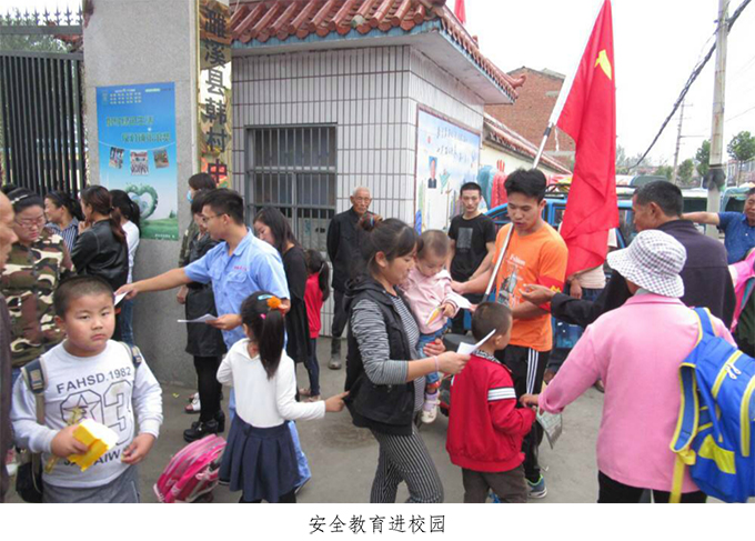 每逢節假日前夕,我們的黨員會聯合項目部安全員組織安全教育進校園活動,發放安全知識傳單,給孩子們宣講防溺水等安全知識。