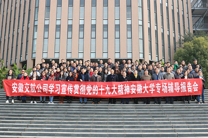 為深入學習宣傳貫徹黨的十九大精神,進一步提升公司有關人員推進深化改革、轉型發展的領導能力和管理水平,為打造美好交航、一流建工提供政治引領和人才支撐,12月5日,安徽交航公司在安徽大學順利舉辦學習宣傳貫徹黨的十九大精神專場輔導報告會。公司領導班子成員、黨委委員,中層管理人員,各項目經理、常務副經理,在肥分公司、項目班子成員,外地項目在肥人員,機關全體工作人員等100余人參加報告會。