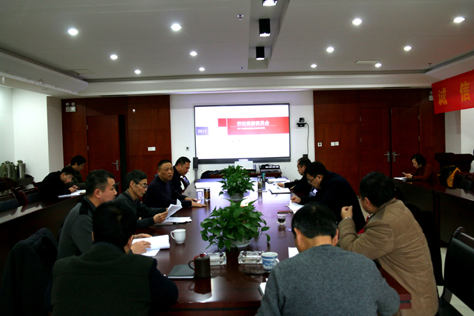 1月3日下午,安徽交航公司召開2017年度評先評優會議,公司勞動競賽委員會成員參會,紀委書記、工會主席李楊主持會議。
