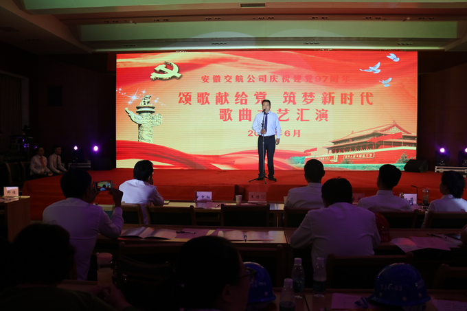 為慶祝中國共產黨成立97周年,展現安徽交航人開拓進取、奮發有為的精神面貌,6月23日晚,安徽交航公司在3樓禮堂隆重舉辦“頌歌獻給黨 筑夢新時代”文藝匯演。