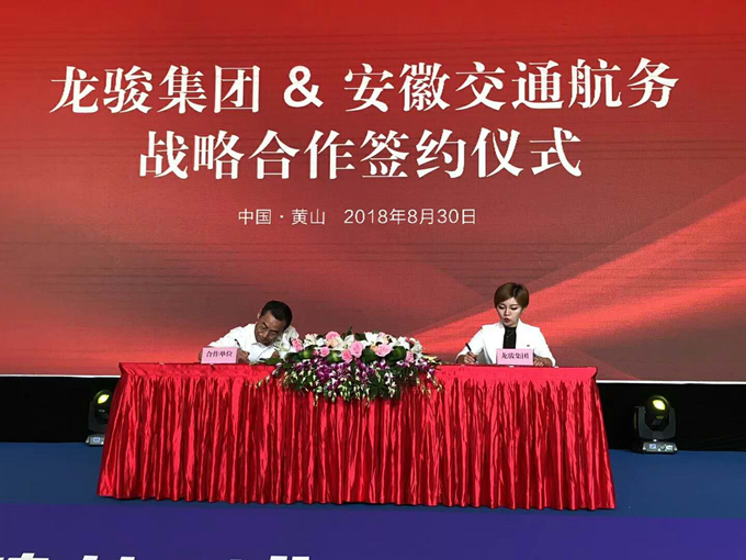 本著對安徽交航公司業界良好口碑和工作質量的認可,龍駿集團期待與安徽交航建立長期合作伙伴關系,一起開創智慧科技養老新領域。8月30日,合作品牌戰略簽約儀式召開,本次出席活動的有海爾集團、美的集團、格力電器等10余家大型公司代表和龍駿集團董事長張運防、副總經理徐卉,參會企業代表與龍駿集團代表徐卉逐一簽訂合作伙伴關系協議書。侯總作為安徽交航代表壓軸登臺,同龍俊集團徐總簽訂合同協議書并合影留念。