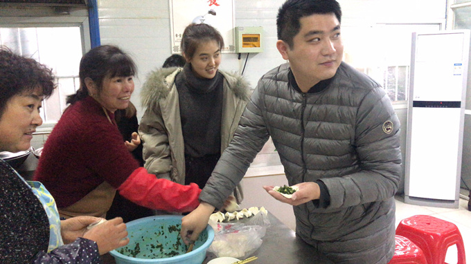 在項目部會議室里,員工們喜氣盈盈,親如一家,好不熱鬧,他們把燈籠懸掛到辦公區和宿舍區長廊上,紅紅火火的氣氛相映而彰。在食堂里,大家忙著包餃子,有和面的、有搟皮的、有拌餡的,分工合作,合理搭配,不亦樂乎,一派其樂融融的景象。大家都充分發揮創意,各種形狀的餃子不一會兒就擺滿了幾大篦子。大家邊包邊說起以前過小年的一些趣聞,還談到農歷新年的一些傳統習俗、小吃及做法,氣氛融洽,其樂融融。歡聲笑語中,上百個餃子新鮮出爐!