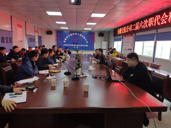 2019年3月13日上午11:00,合軌項(xiàng)目部組織項(xiàng)目部全體員工召開學(xué)習(xí)安徽交航公司二屆六次職代會精神宣貫會,專題學(xué)習(xí)職代會的重要精神。安徽交航公司副總經(jīng)理侯力參加會議。