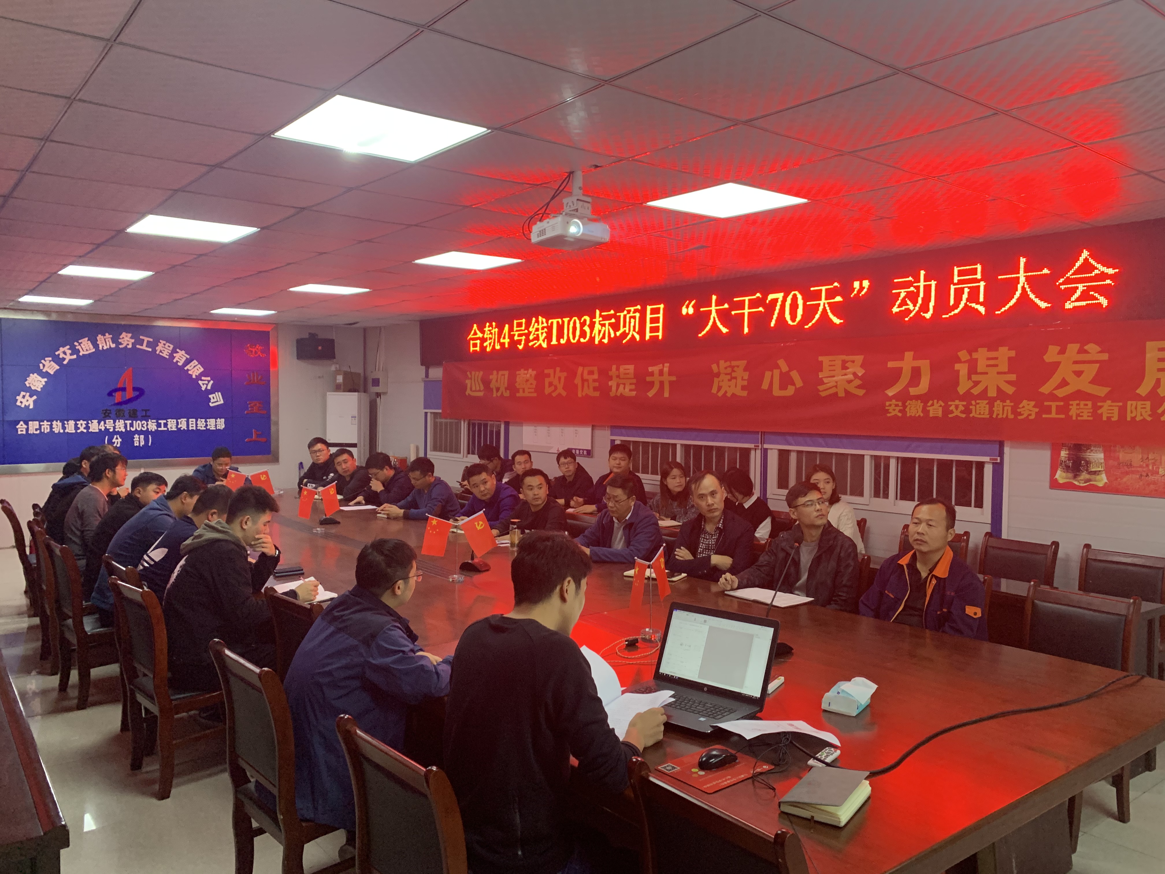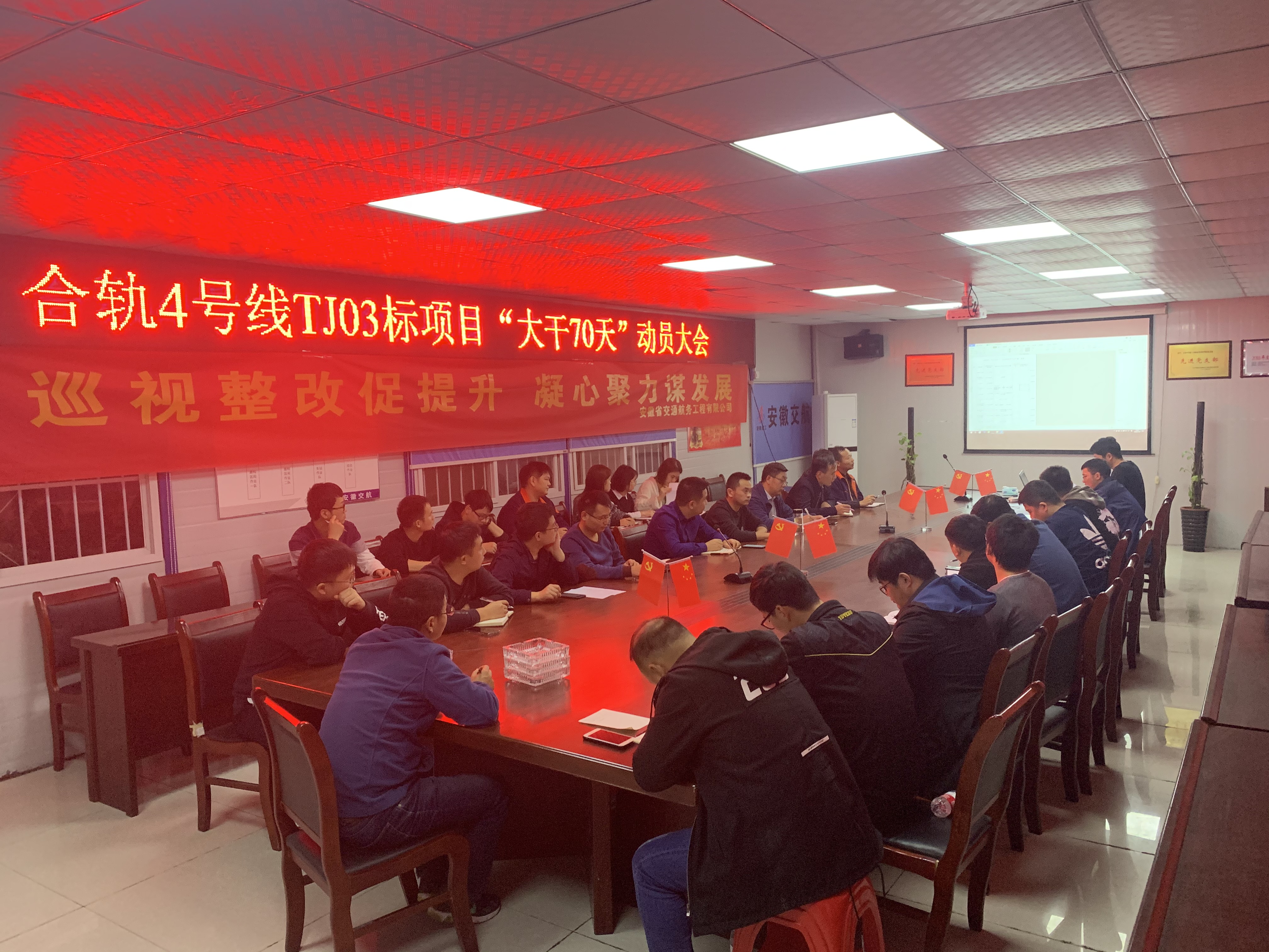11月4日下午,合肥市軌道交通4號(hào)線TJ03標(biāo)項(xiàng)目部召開了“大干70天”勞動(dòng)競(jìng)賽動(dòng)員大會(huì),動(dòng)員會(huì)由項(xiàng)目經(jīng)理徐鑫主持,項(xiàng)目部全體人員參會(huì)。