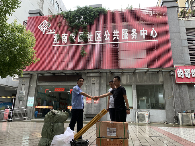 項目黨支部為社區防汛人員送去污水泵、編織袋、鐵鍬、礦泉水等物資,同時派遣支部黨員參與社區排水、交通引導、電梯安全巡查等工作,排查安全隱患,宣傳防汛知識,助力防汛工作。