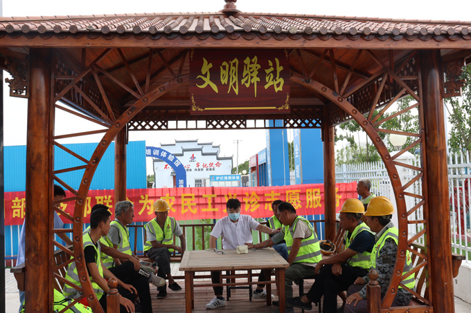 “在工地上干活根本沒時間關心自己的身體健康,今天一量血壓才知道偏高,以后還是要好好注意健康問題,項目部此次開展的免費義診活動,讓我門在這里工作感到安心、舒心。”工友們在檢查結束開心地說道。在義診活動中,醫護人員為每一位前來就診的工友們進行了認真檢查,為工友們提供了聽診、健康咨詢、測血壓等服務,耐心解答了工友們的疑問,并針對工友們職業常見病、慢性病作了講解指導。