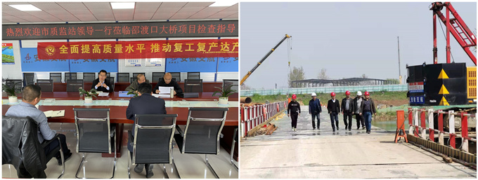 4月8日上午,亳州市交通基本建設工程質量監督局馬洪剛一行到西淝河邵渡口大橋項目開展安全生產隱患排查工作。三公司經理潘家奎、項目執行經理張功印及監理單位代表等參加檢查。
