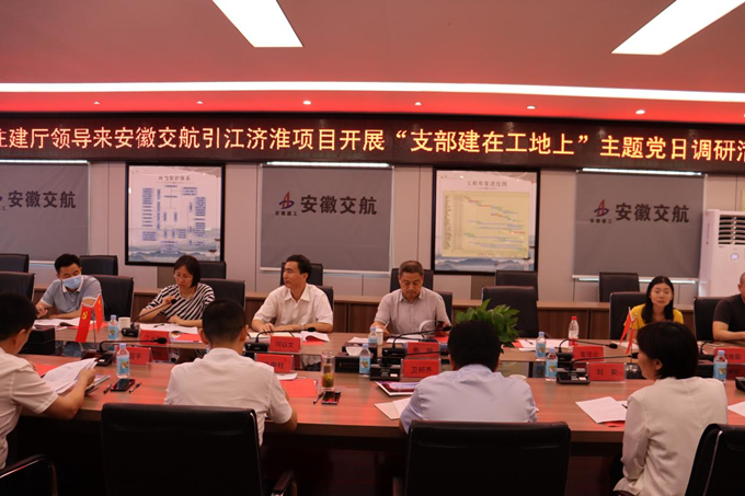 8月19日下午,安徽省住建廳工程質量安全監管處黨支部來安徽交航引江濟淮新時代文明實踐點開展“支部建在工地上”主題黨日活動,并與二公司黨支部簽訂結對共建協議。省住建廳工程質量安全監管處處長何以文、副處長陳鐘,三級調研員丁金穎、四級調研員董理論;公司黨委書記、董事長方申柱,黨委副書記、工會主席黃國平,黨委委員、副總經理張瓊等領導參加活動并見證簽約。