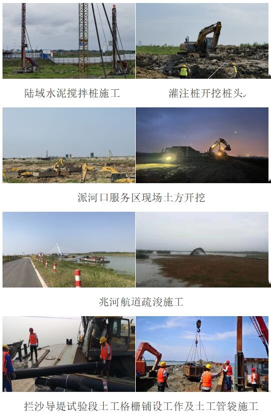 目前,引江濟淮項目派河口服務區按照計劃已完成多項工作,派河航道疏浚工作也已于9月7日正式開始,目前正在有序推進。兆河航道疏浚土方開挖已完成110萬方,兆河航道攔沙導堤試驗段已完成土工格柵鋪設工作并完成土工管袋施工1000方。本年度,項目累計完成產值約8000萬元。接下來,項目黨支部將繼續聚焦進度,充分發揮黨建引領作用,持續助推公司高質量發展。