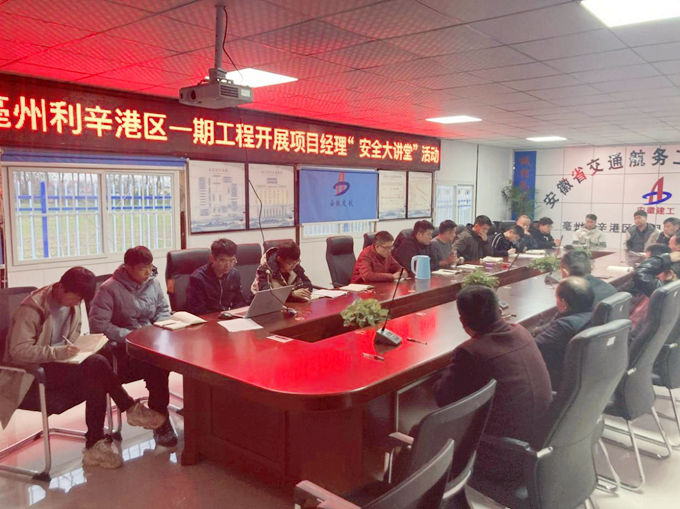 為深入學習宣傳、貫徹落實《新安全生產法》,進一步提高員工安全生產的法律責任和安全意識,11月7日,利辛港區項目部利用下雨空閑時間,組織開展了一場以“貫徹落實《新安全生產法》,建立健全安全生產責任制”為主題的項目經理安全大講堂活動。本次安全教育講堂由項目經理葉宏作為主講人,共有10余名青年員工和各施工班組代表參加了講座。