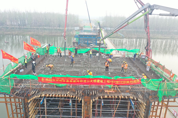 11月2日晚上9點19分,隨著最后一輛混凝土罐車駛離施工現場,利辛邵渡口大橋主橋變截面連續大箱梁14#墩0#塊和1#塊混凝土順利澆筑成功,標志著邵渡口大橋主橋變截面連續大箱梁掛籃懸臂施工正式拉開序幕。