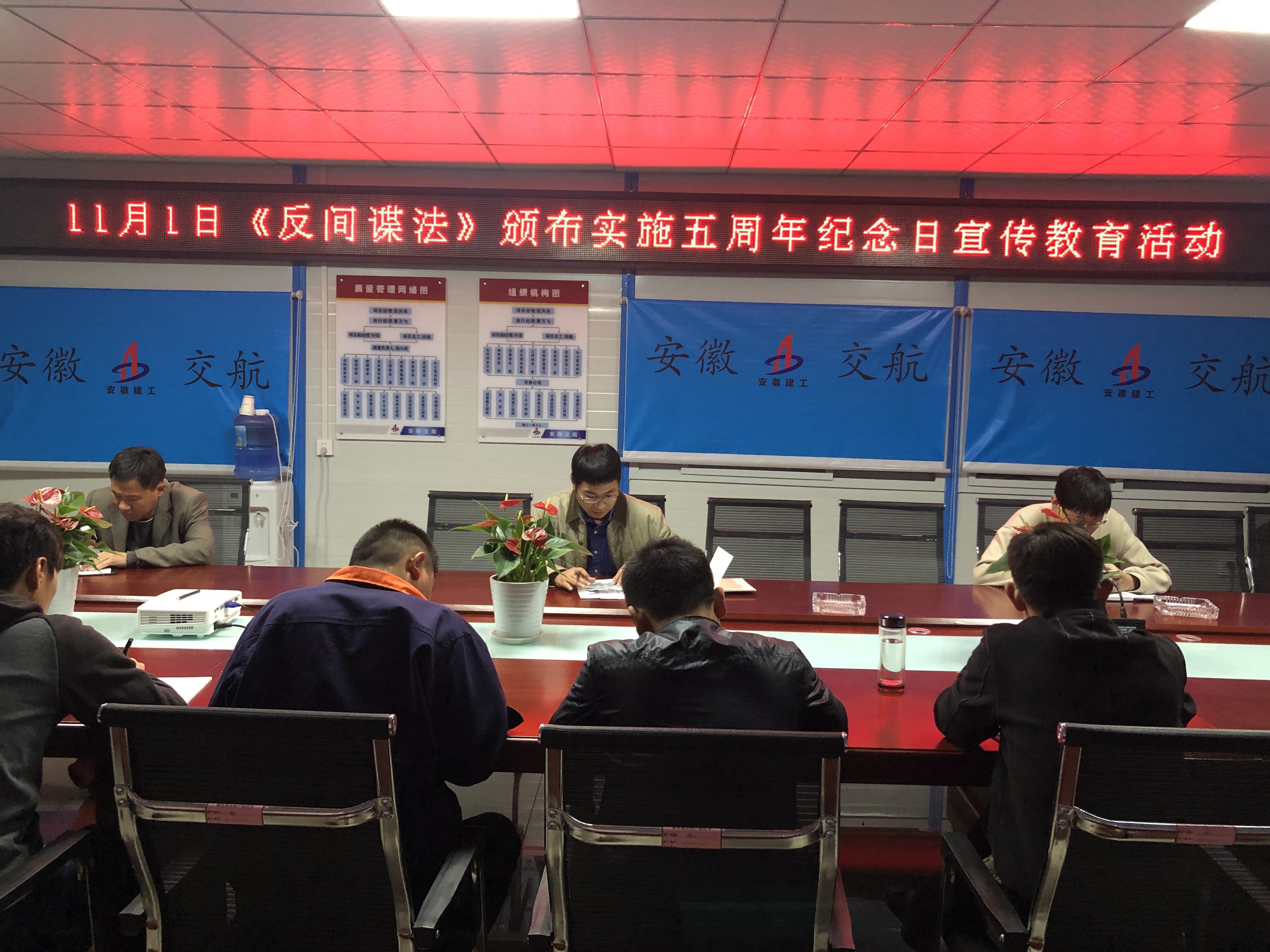 2019年11月1日,反間諜法已頒布五周年,為進(jìn)一步增強(qiáng)員工的反間諜安全防范意識(shí),使維護(hù)國家安全、保守國家秘密思想深入人心。11月8日,多金泗縣項(xiàng)目部開展學(xué)習(xí)《反間諜法》解釋及案例分析,項(xiàng)目部全體員工參加學(xué)習(xí)。
