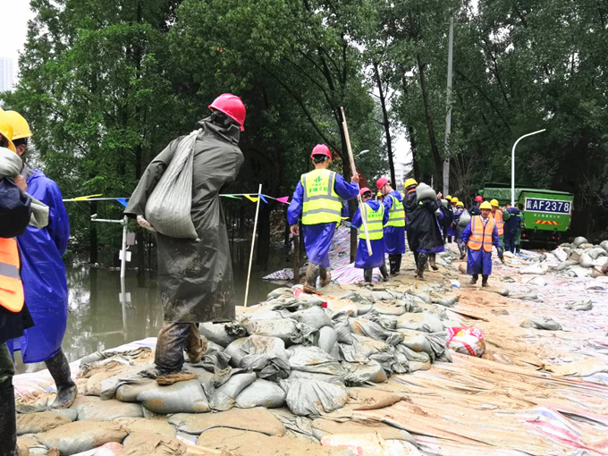 項目黨支部書記田龍全程指揮防汛抗洪工作,大家分工明確,積極主動投身到防汛抗洪的工作中,一鍬一鍬挖,一袋一袋堆,扎出成百上千個沙包,堵在南淝河堤壩地勢低洼處,形成一道堅實的防線,幫助當地社區排除險情。