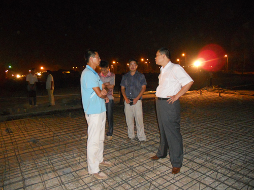 李總一行乘著夜色檢查施工現場,公司總經理助理、滁州市政務中心廣場項目部經理方申柱詳細匯報了工程施工進度、質量安全措施情況,李總對項目部采取的一系列促進工程進度及質量安全措施表示肯定,鼓勵項目部全體員工突出質量意識,加強隊伍建設,牢牢把握安全生產,和諧穩定等五個關鍵點。希望大家團結一心,繼續努力,真抓實干,作好各項工作,在即將到來的“中秋”、“國慶”雙節,以優異的成績體現公司精神風貌。