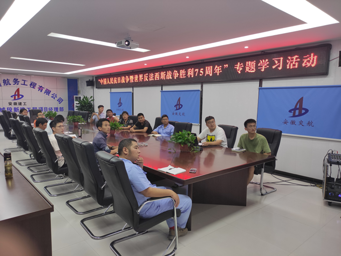 為了進一步弘揚偉大抗戰精神,厚植愛國主義情懷,9月3日晚,安徽交航G329利辛繞城段新建工程項目部組織開展紀念“中國人民抗日戰爭暨世界反法西斯戰爭勝利75周年”專題學習活動。項目部全體職工參加專題學習。