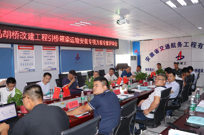 6月20日上午,安徽交航公司利辛縣S247馬胡橋改建工程項目部組織召開了主橋門式墩身施工專項方案和引橋箱梁運輸安裝專項方案專家評審會。公司黨委委員、副總經理張瓊,總工程師辦公室主任衛邦齊,亳州市質監局、利辛縣交通局、合肥工大監理、安徽宏泰設計院、利辛安建公司等單位代表以及馬胡橋項目部部分職工參加評審會。