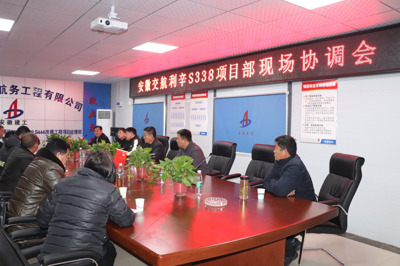 2019年12月6日下午,S338利辛段改建工程二期現場協調會在S338項目部召開,利辛縣交通局業主代表江文顯、評估公司李總、江集鎮朱華東副書記及沿線各村書記、利辛S338項目部負責人參會。