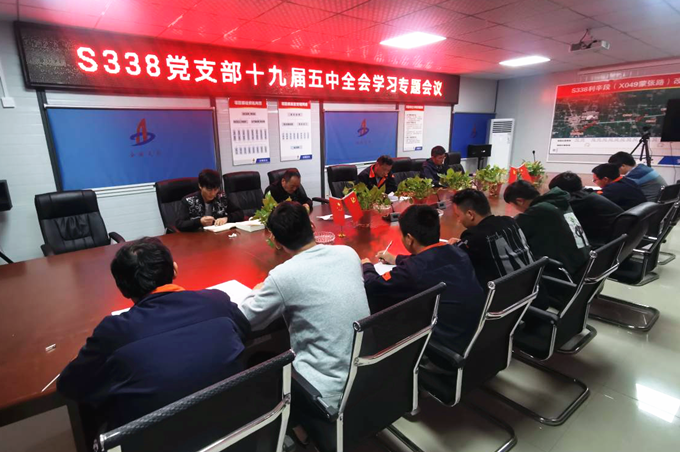 11月3日晚8:30,利辛S338項目部全體人員在項目部會議室召開十九屆五中全會精神專題學習會議。