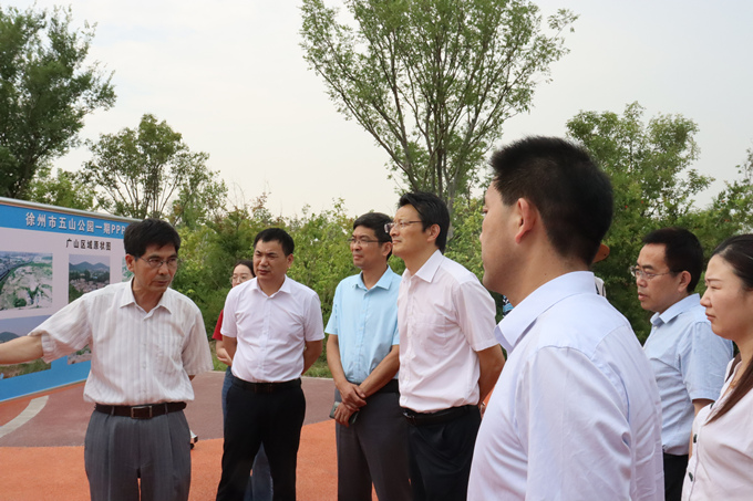 考察團首先到徐州市進行了考察,并在徐州市住建局相關(guān)領(lǐng)導(dǎo)的陪同下,通過實地察看、聽取介紹等形式,對徐州市政綠化建設(shè)、河道治理、城市中心游園綠化、水系建設(shè)、管理綠化以及配套設(shè)施建設(shè)等進行了詳細考察。次日,考察團實地考察了安徽交航公司承建的淮北市中湖礦山地質(zhì)環(huán)境治理PPP項目,詳細了解了中湖項目治理建設(shè)過程。