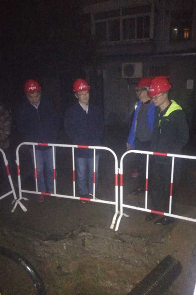 會后,方總聽說雨污分流項目的部分同事還冒雨在現場施工,便與邵佳、李立柱等一行人匆忙驅車趕往施工現場指導、慰問奮戰一線的同事,給年輕的同志打氣助力,在寒風細雨中帶去了溫暖。