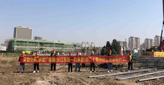 此次橋梁樁基工程的順利啟動,標志著廣德路項目再次啟動后全面進入橋梁結構施工,為項目工程建設按下“快進鍵”。廣德路(長江東路-臨泉東路)、鳳陽東路(國風路-通達路)、國風路(鳳陽東路-臨泉東路)道路工程位于合肥市瑤海區,是合肥市瑤海區重點工程建設管理中心的重點項目,其中廣德路跨二十埠河橋為曲線橋,全長50m、寬40m,橋梁軸線與河道交角約為80°,采用2*25m現澆連續箱梁,分兩幅橋設置。