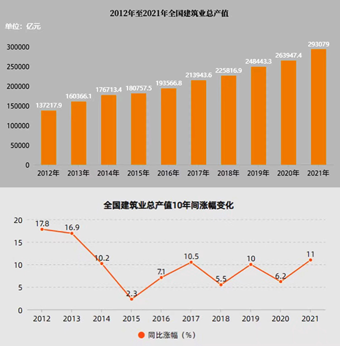 國家統計局近日公布數據顯示,2021年全國建筑業總產值293079億元,同比增長11.0%。