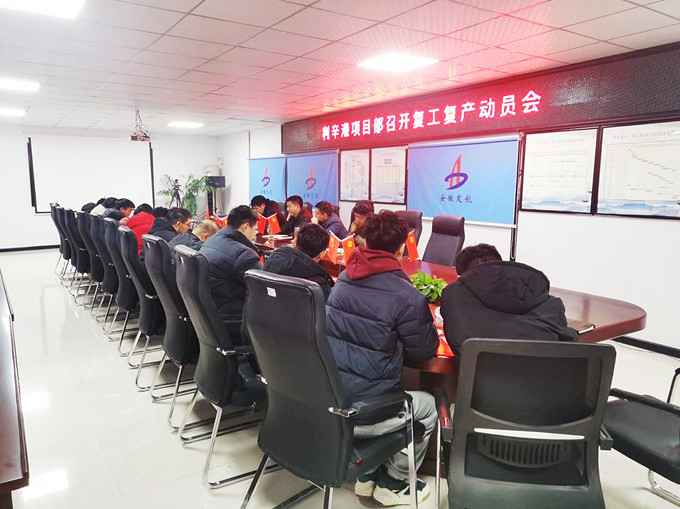 2月14日晚,利辛港區項目部召開復工復產動員會。項目部全體職工參加會議。
