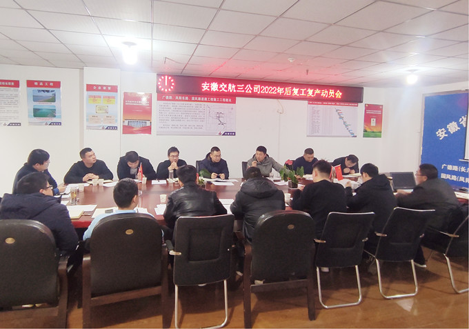 2月11日下午,三公司2022年復工復產工作動員會在肥召開。會議強調,要以“開局就是決戰,起步就要沖刺”的昂揚姿態,下好先手棋、打好主動仗,以敢于擔當的勇氣、求真務實的行動,高效推進復工復產,為全年各項工作任務完成奠定堅實基礎。分公司班子成員、各項目負責人、項目總工及部分項目職工代表參加會議。分公司黨支部書記、總經理潘家奎主持會議。