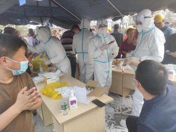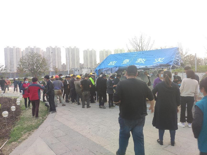 在得知項目駐地疫情防控力量緊張后,項目青年志愿者們主動請纓,組成志愿者服務隊趕往核酸檢測點,與醫護人員、社區工作者等并肩戰斗,協助中新蘇滁質安站布置采樣點、引導附近居民及項目工人登記信息、維持現場秩序,確保核酸檢測工作順利進行。