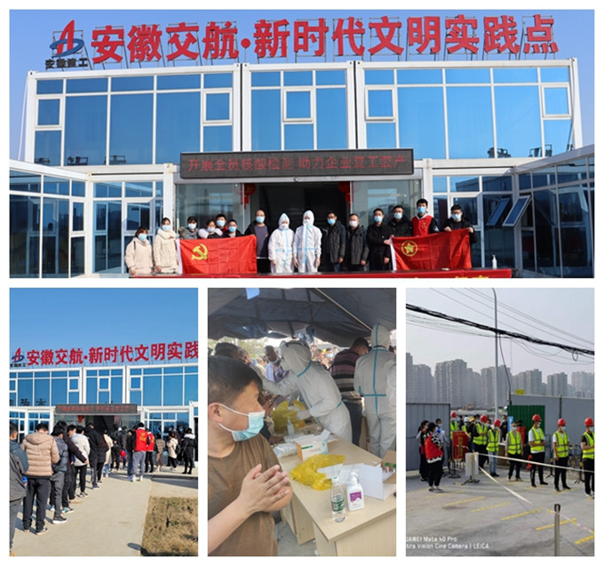面對近期省內多地出現疫情的嚴峻情況,公司引江濟淮、瑤海區鳳臺路、滁州、利辛港等項目發動黨員及青年團員組建志愿者服務隊,組織項目青年職工與施工現場全體班組進行核酸檢測。志愿者們主動投身核酸檢測點開展志愿服務,協助布置采樣點、指引附近居民及建筑項目工人登記信息、維持秩序,與醫護人員、社區工作者并肩戰斗,確保核酸檢測等疫情防控工作順利進行,助力打通疫情防控“最后一公里”。