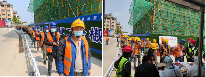 為加強疫情防控工作、確保項目安全生產有序進行,4月18日上午9時,全椒大墅物流園項目部主動對接社區,組織開展第四輪全員核酸檢測。