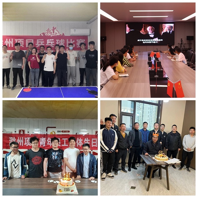 為深入開展“我為青年辦實事活動”,公司所屬各單位立足服務青年職工,深入開展“5幫1”活動。五一期間,三公司利辛區域聯合項目、淮北項目、大墅項目組織召開青年座談會,與青年進行一次談心談話,通過傾聽青年心聲、答疑解惑,幫助青年職工解決工作生活中遇到的實際問題;5月2日,滁州項目組織青年職工開展一場素質提升活動,通過乒乓球比賽提升了項目團隊凝聚力,增強了青年職工的身體素質;5月2日,引江濟淮項目組織青年開展一次紅色教育,集中組織觀看了以巴黎和會為背景的愛國電影《我的1919》,引導團員青年不忘初心、努力奮斗;5月4日前夕,甘肅、滁州項目為青年職工過一次生日,通過青年職工集體生日會,營造了團結、和諧的項目氛圍;5月4日前夕,引江濟淮、泗縣、淮北、利辛區域聯合、滁州等項目為青年職工上一堂主題團課。