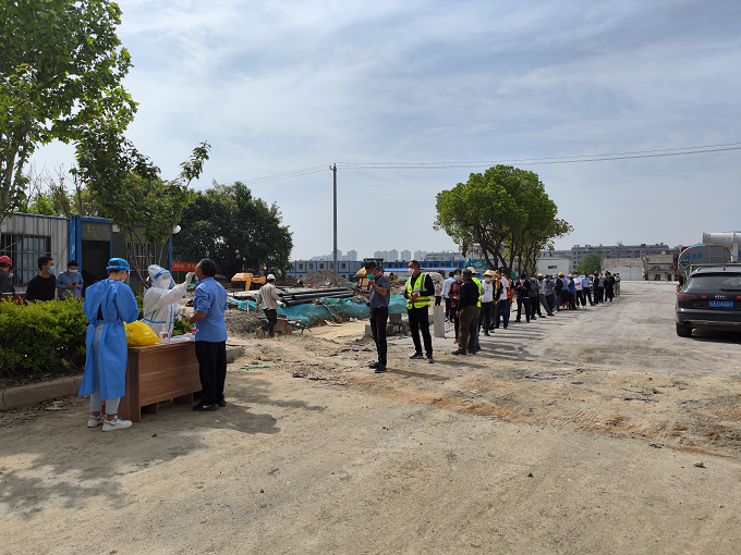 “感謝你們交航項目在工程建設這么忙碌的情況下,還抽調人員支援我鄉核酸檢測工作,這是對我們疫情防控工作最大的支持。”4月21日下午,嚴店鄉衛生院伊院長與核酸檢測志愿者們說到。面對肥西縣嚴店鄉區域在建項目多、所有參建項目人員一周三檢及醫護檢測人員不足的情況下,引江濟淮項目部積極整合自身資源主動擔當作為,第一時間抽調1名具有護士執業資格證人員和1名核酸采集掃碼人員,并將新時代文明實踐點設置為核酸檢測點,在嚴店鄉衛生院指導下,承擔項目工地自檢工作,配合屬地政府開展核酸采集工作。截至目前,已完成核酸采集8679人次,切實為屬地政府減輕了檢測壓力。
