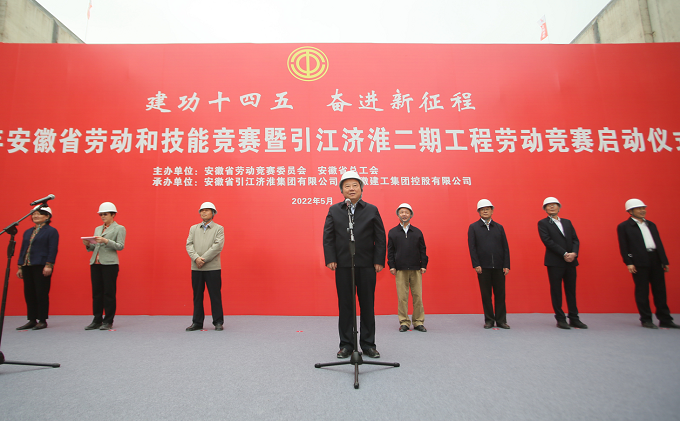 省人大常委會黨組副書記、副主任,省總工會主席宋國權宣布競賽啟動,省勞動競賽委員會副主任、省總工會黨組書記、副主席徐發成作競賽動員講話。省發改委一級巡視員、省引江濟淮辦公室主任胡再生,安徽建工集團控股有限公司黨委書記、董事長趙時運分別致辭。